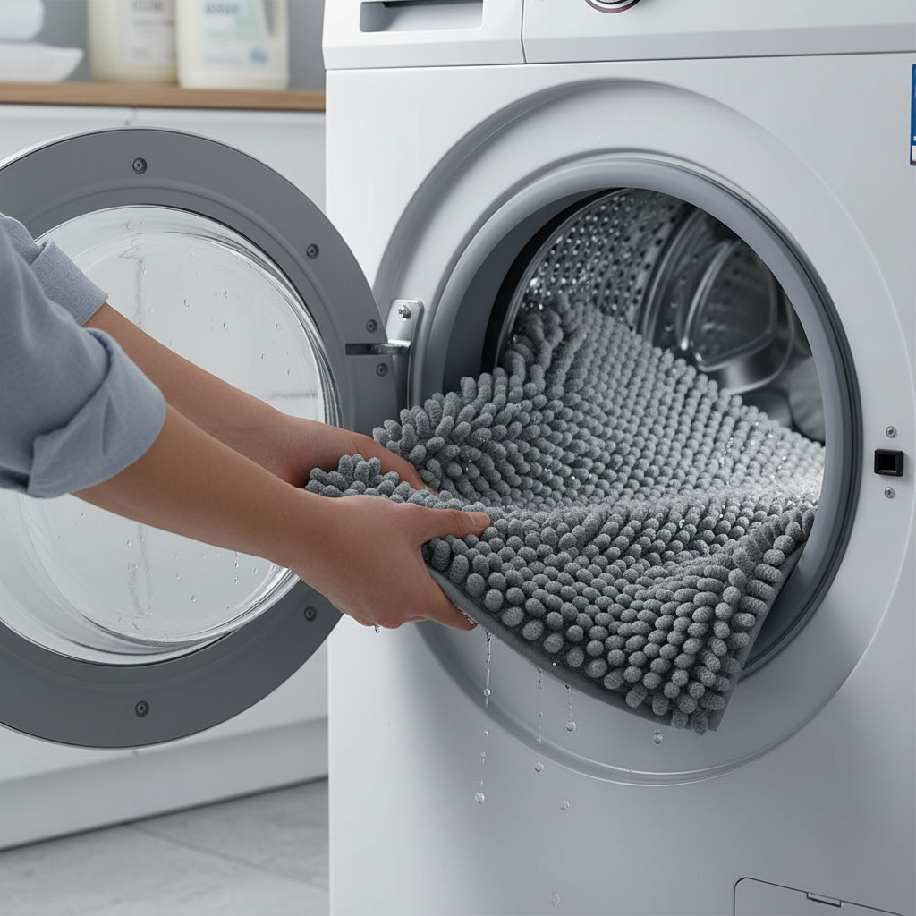 Cleanup is a breeze. When the mat is full, just shake out the loose debris and toss it in the washing machine. It's fully machine washable and dryer safe, coming out looking new every time.